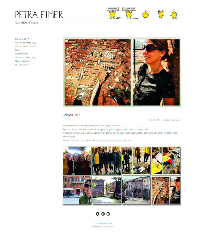 Die Künstlerin Petra Eimer (Illustratorin diverser Kinderbücher & freie Grafikerin) hat von unserer Webdesign Agentur ein Konzept zum Relaunch Ihrer Website erbeten, die bisher seit einigen Jahren weitestgehend unverändert auf Contao lief. Nach eingehenden Gesprächen und auf Kundenwunsch wurde das Open Source Content Management System WordPress zur Neuerstellung der Website ausgewählt, da die Künstlerin Ihre Neue Website in Zukunft auch produktiv selber nutzen möchte um etwa neue Bilder-Galerien zu Kinderbüchern, Grafik, Auftragsarbeiten als Illustratorin oder einfach nur Blog-Beiträge zu erstellen.